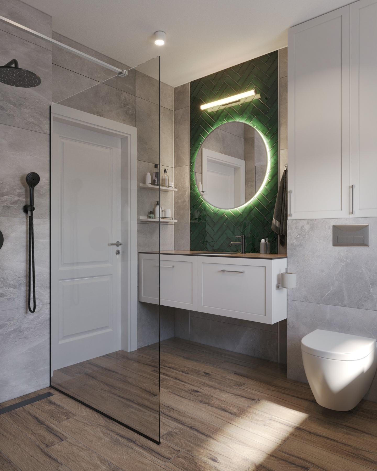 Projekt obejmował pomieszczenia na parterze i łazienkę na piętrze. Styl był dopasowany do dość zróżnicowanych gustów klientów. Było dużo do dogadania i  wspólnych decyzji. Projekt wyszedł bardzo przytulny i ciekawy. Bardziej tradycyjny i wiejski ale z elementami nowoczesności.