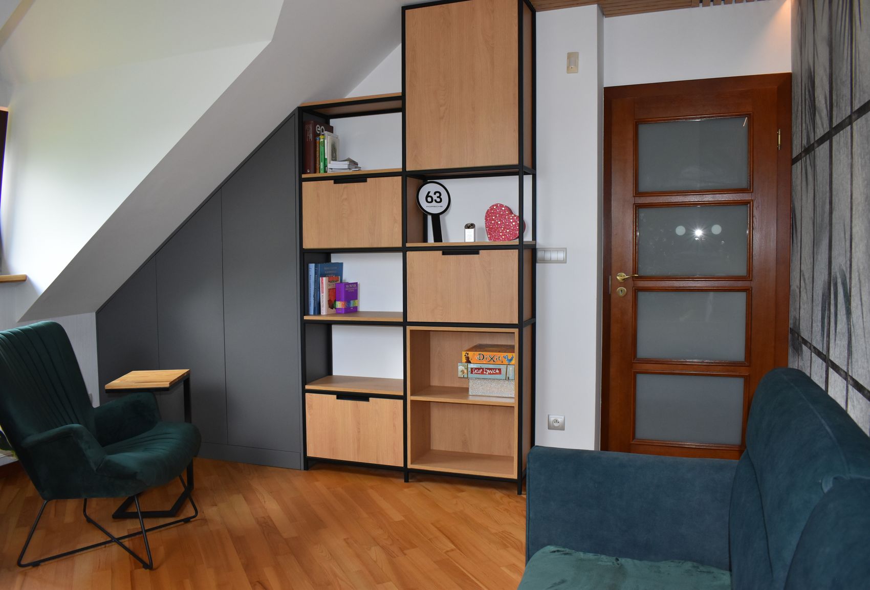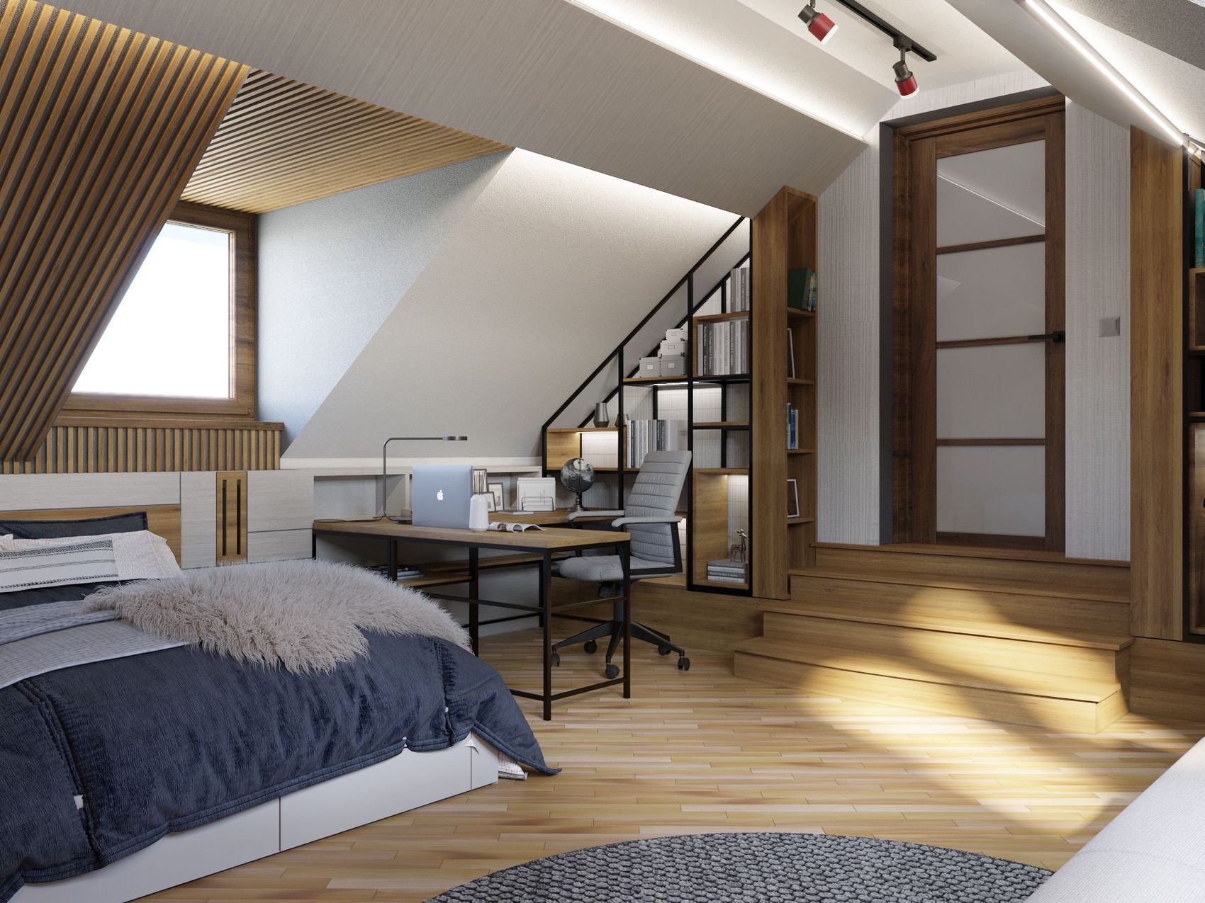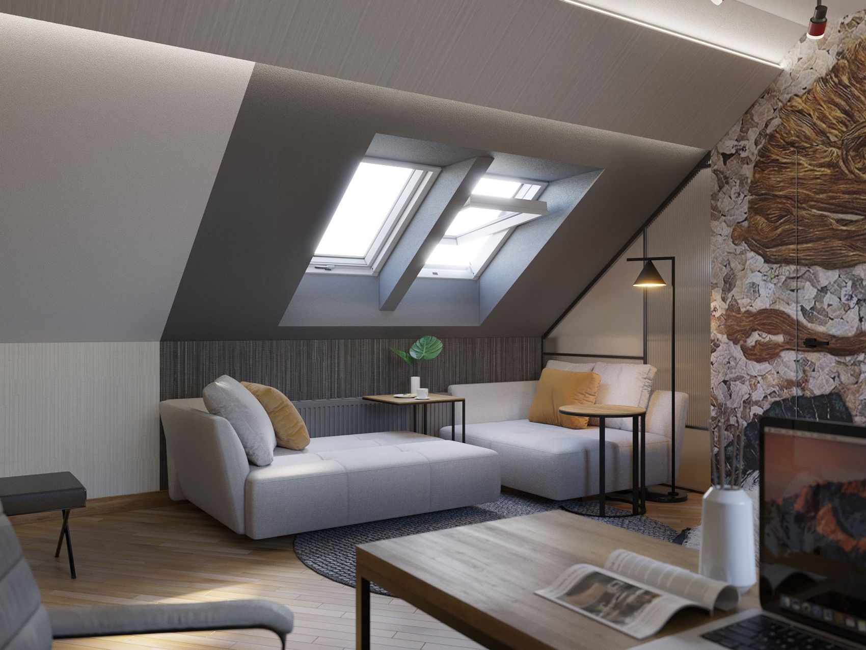 Projekt wnętrza dwóch pokoi dziecięcych umieszczonych na poddaszu domu jednorodzinnego na bazie dostarczonego układu funkcjonalnego