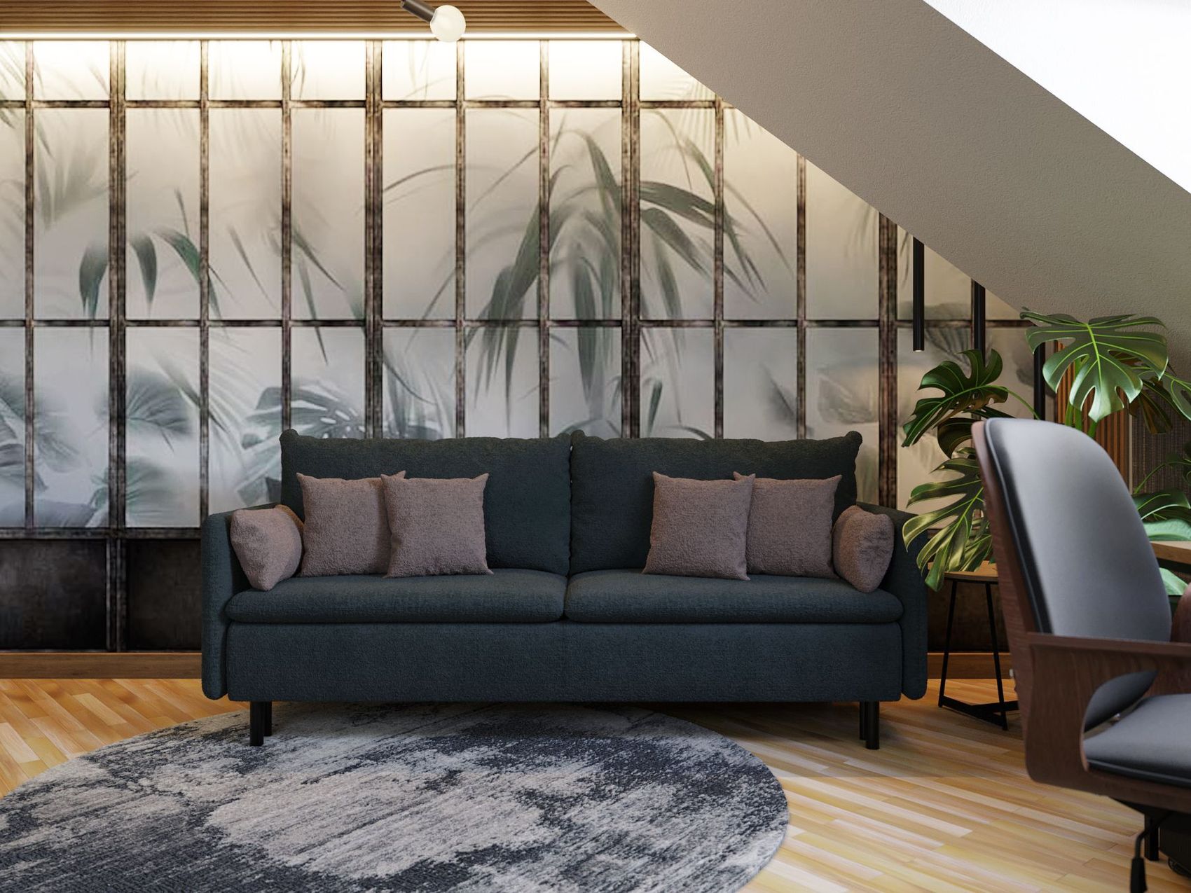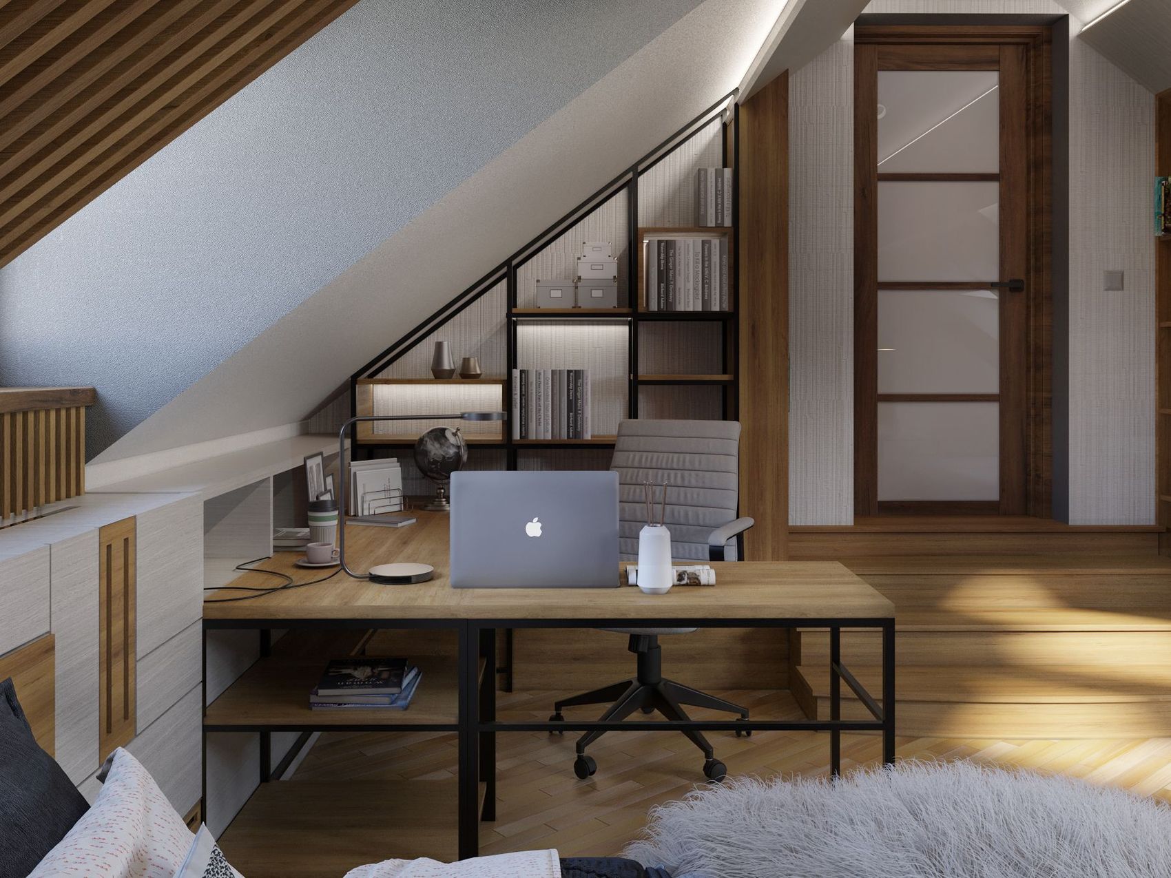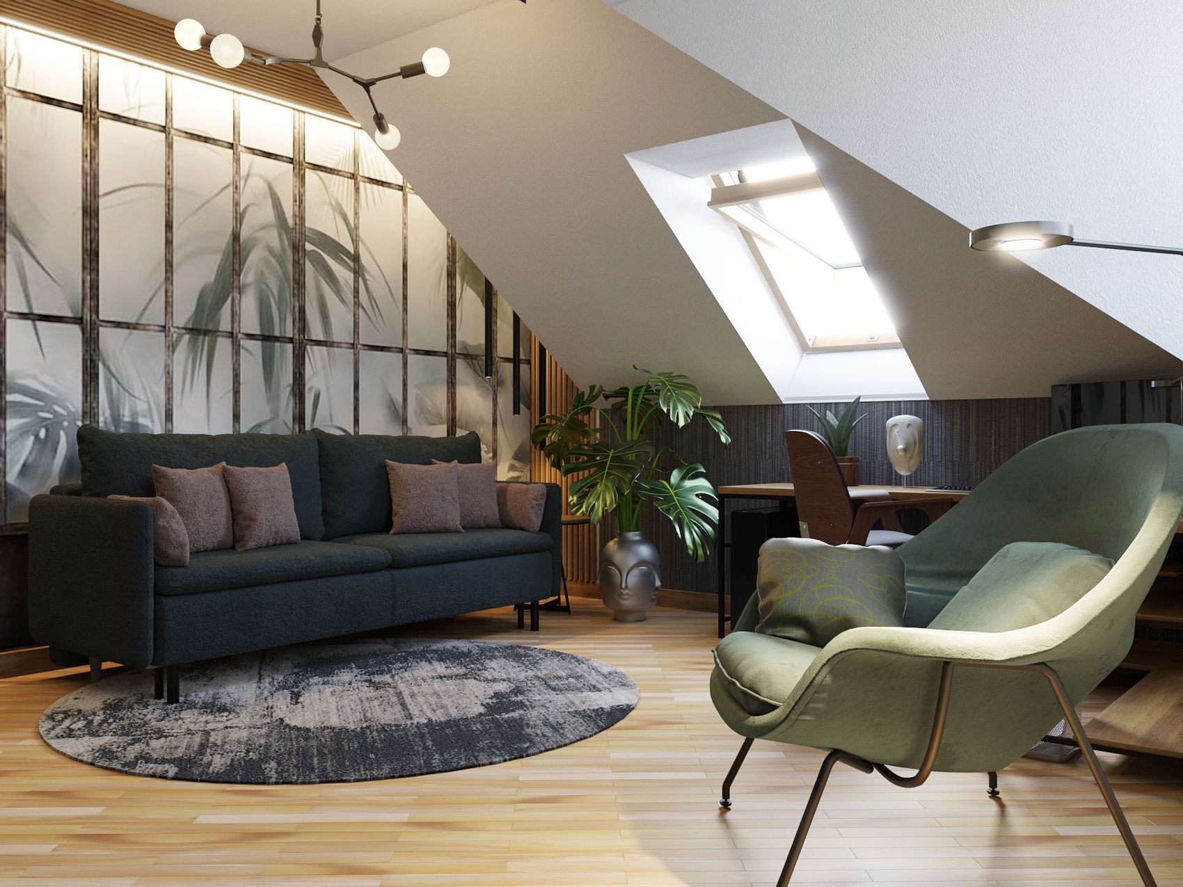 Projekt wnętrza dwóch pokoi dziecięcych umieszczonych na poddaszu domu jednorodzinnego na bazie dostarczonego układu funkcjonalnego