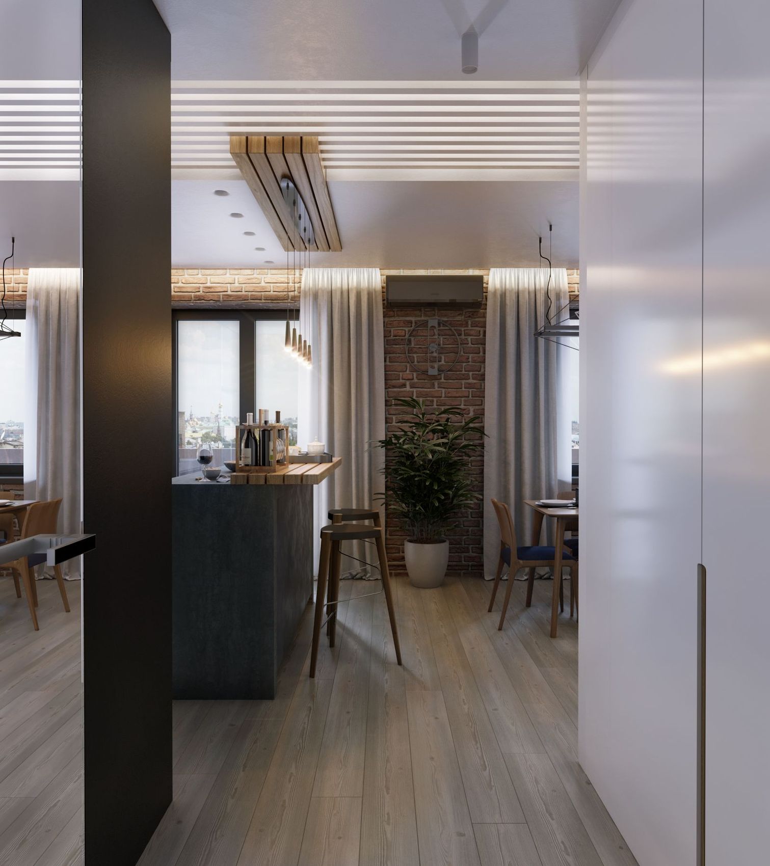 Wizualizacja projektu mieszkania młodej rodziny w Kcharkowie w stylu lekkim loftowym na zlecenie innej firmy projektowej