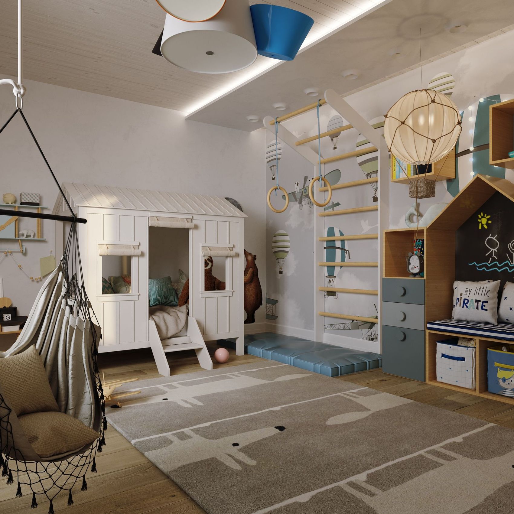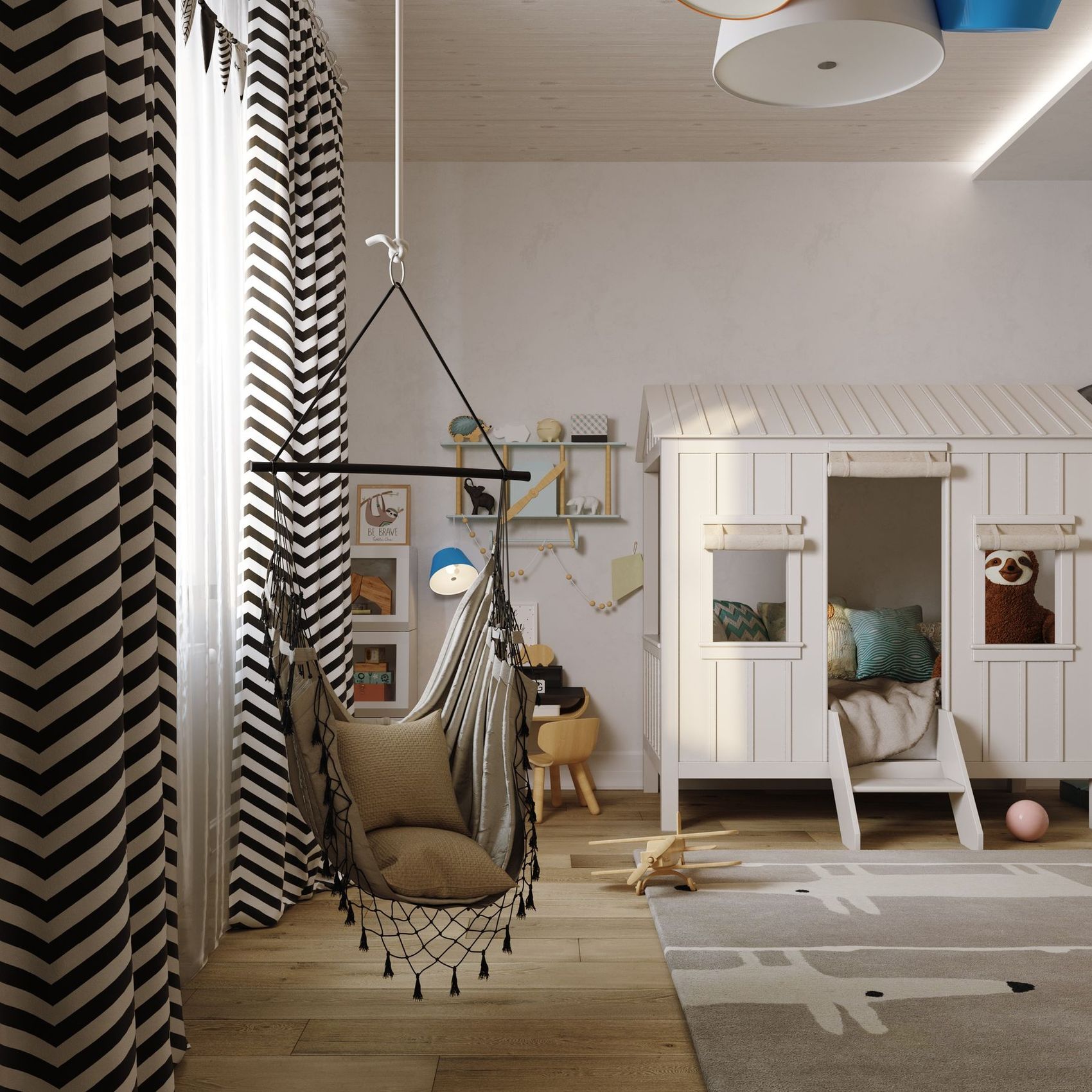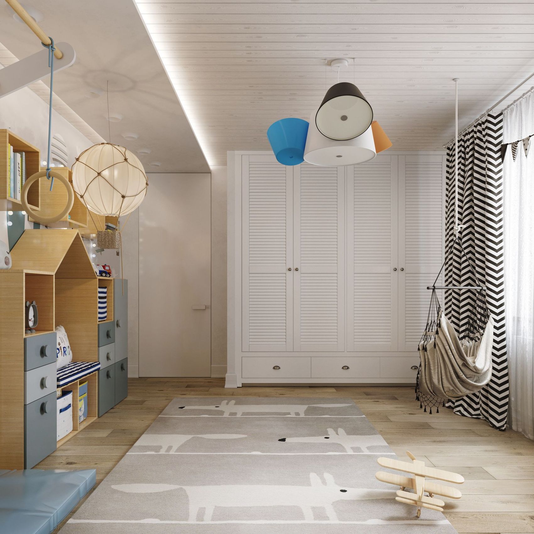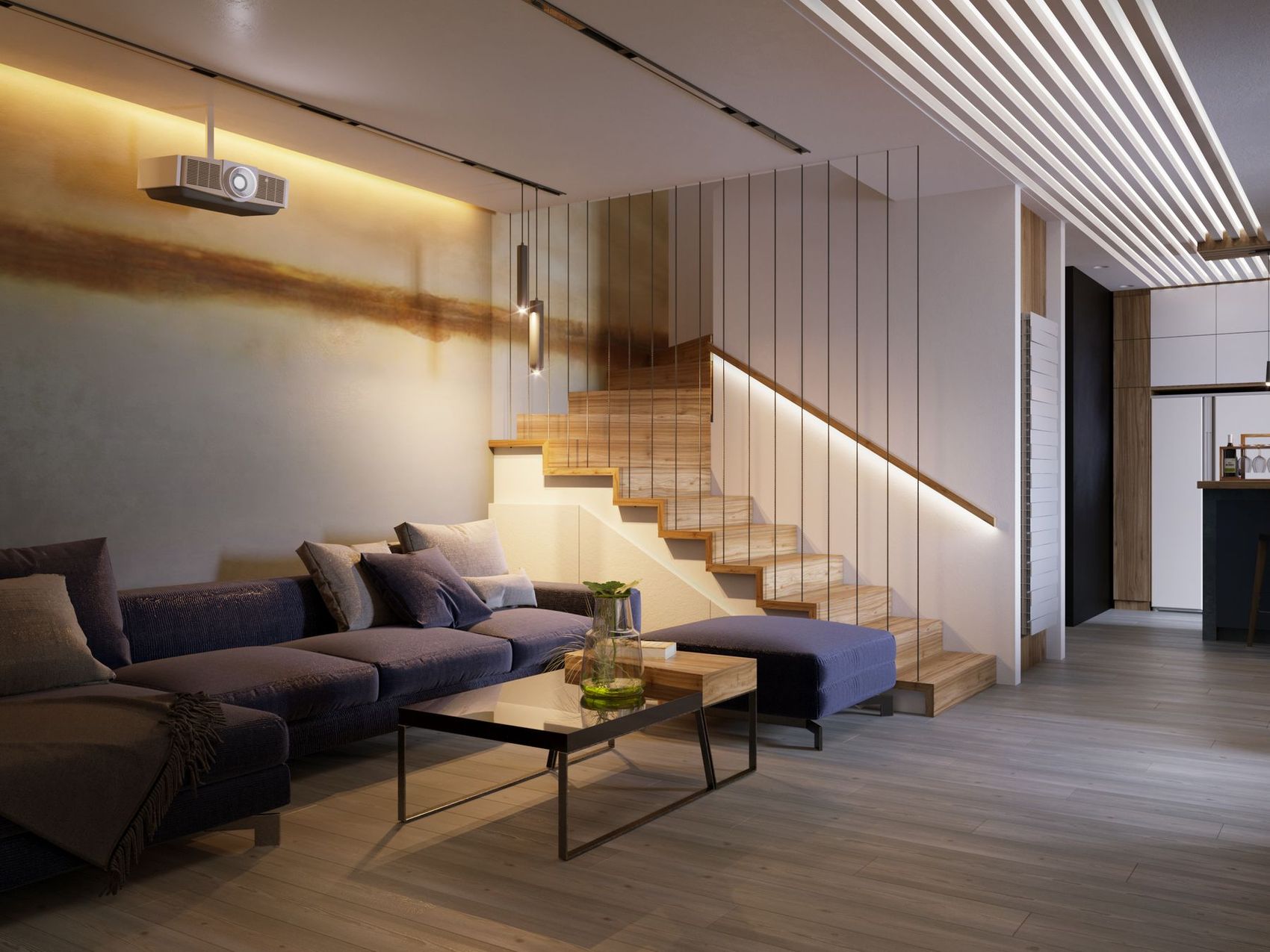 To zlecenie wymagało stworzenia wizualizacji na podstawie wstępnego układu funkcjonalnego oraz wykorzystanych materiałów, mebli i urządzeń. Projekt dostosowany do potrzeb klienta wymagał zaprojektowania różnorodnych mebli od podstaw, biorąc pod uwagę, że miały być one wykonywane na zamówienie. Dodatkowo, projekt ten obejmował opcję dodatkowych usług, takich jak tworzenie scenariuszy oświetlenia dla wybranych pomieszczeń oraz panoramy 360 stopni. Zlecenie dotyczyło stworzenia wizualizacji dla wybranych pomieszczeń, w tym salonu z kuchnią, sypialni, pokoju dziecięcego oraz balkonu.